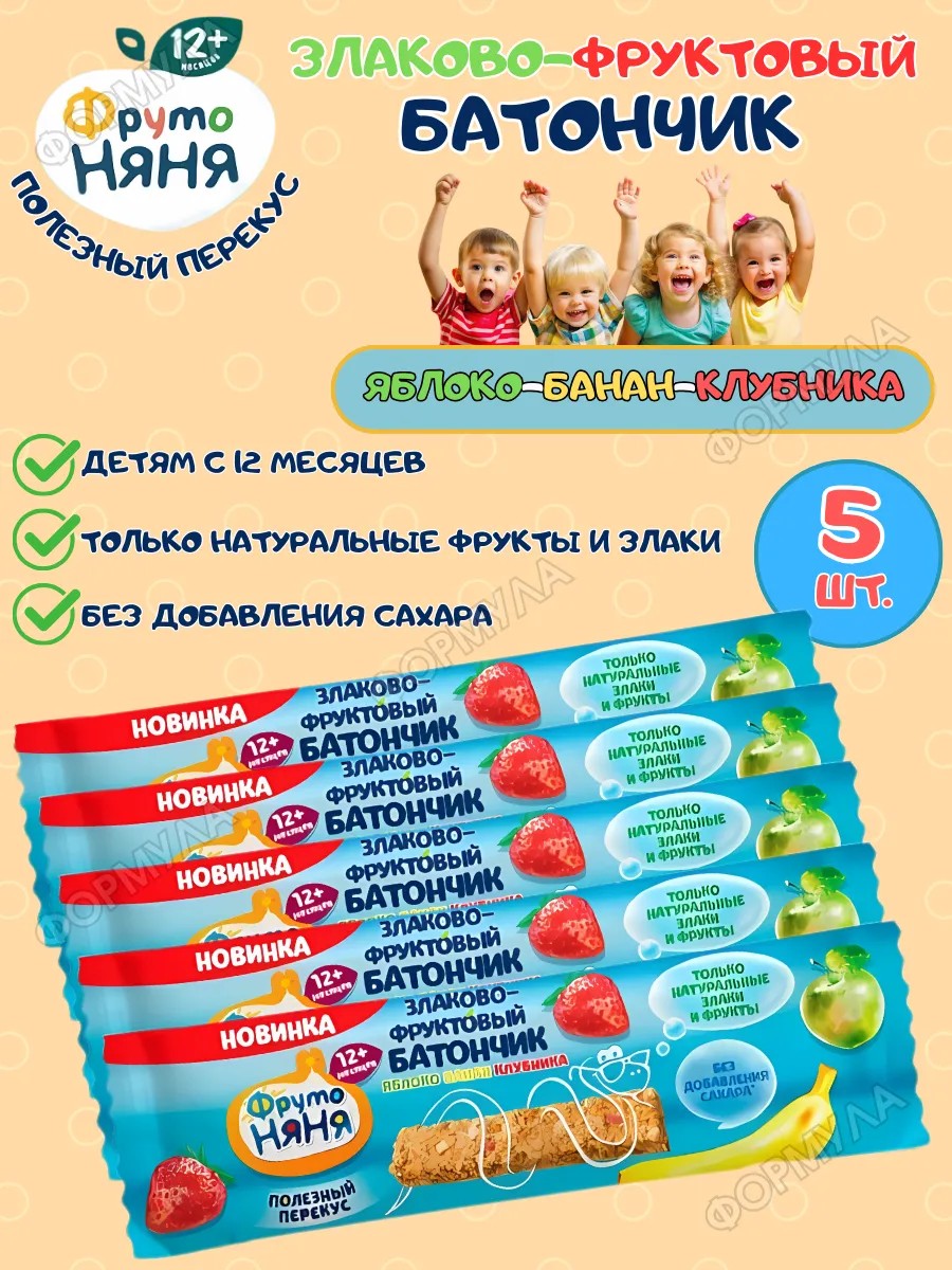 | Комплектация | фрутоняня батончик злаково-фруктовый яблоко-банан-клубника 25,0; 5 шт |
