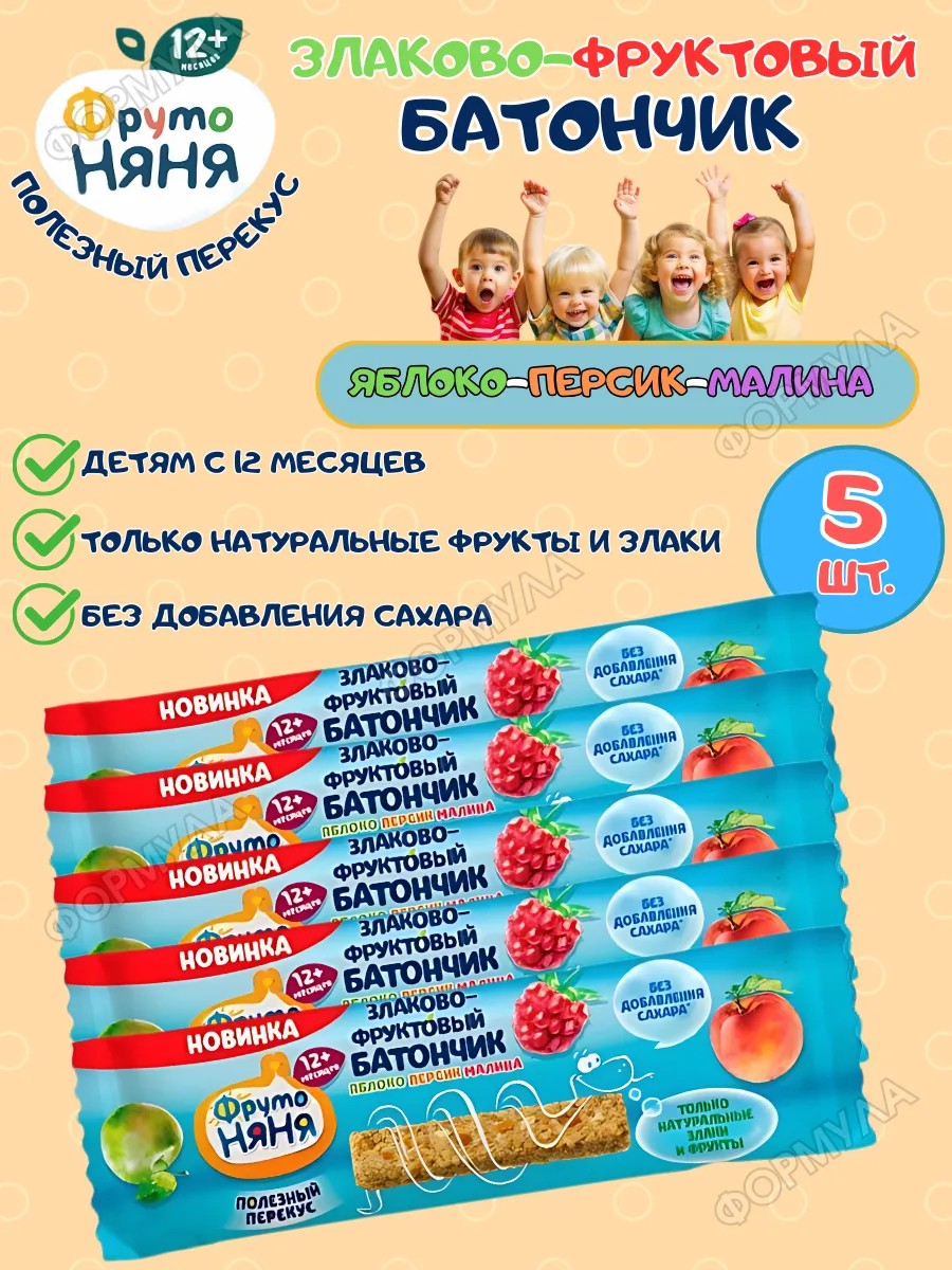 ФрутоНяня Злаковый батончик детский яблоко-персик-малина 25,0г - 5шт