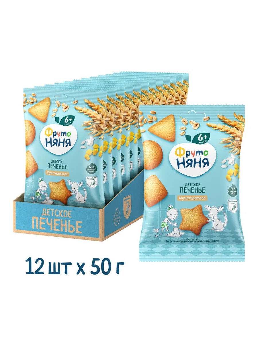 Детское печенье мультизлаковое, 50г (12 шт)