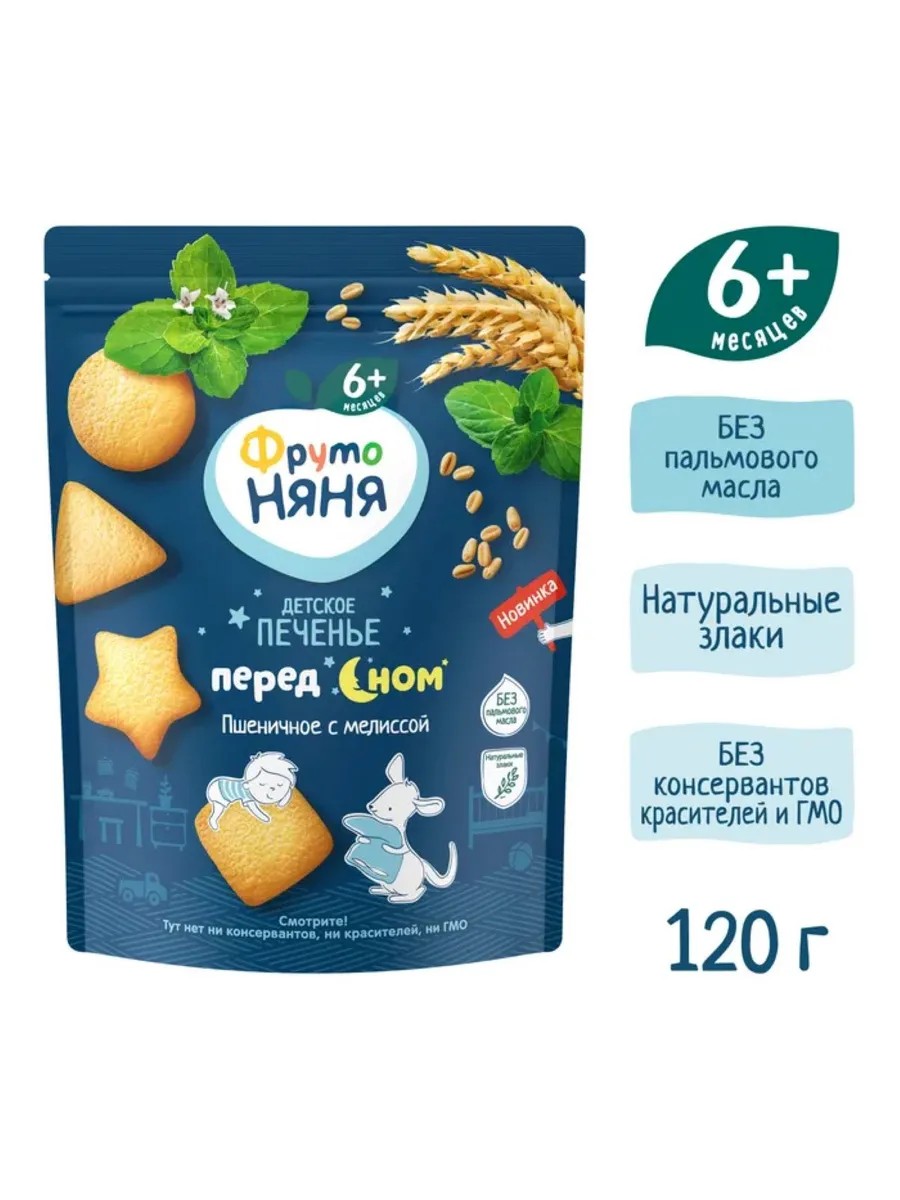 Что предложить малышу в качестве вечернего перекуса? Попробуйте новое печенье с мелиссой «Перед сном»! «ФрутоНяня» знает, как полноценный здоровый сон важен для малыша. Он погружается в мир фантазий и волшебства и в это же время укладывает по полочкам новые знания и впечатления, полученные за день. Чтобы ваш малыш сладко спал, мы разработали печенье, которое подходит для ритуала вечернего кормления.