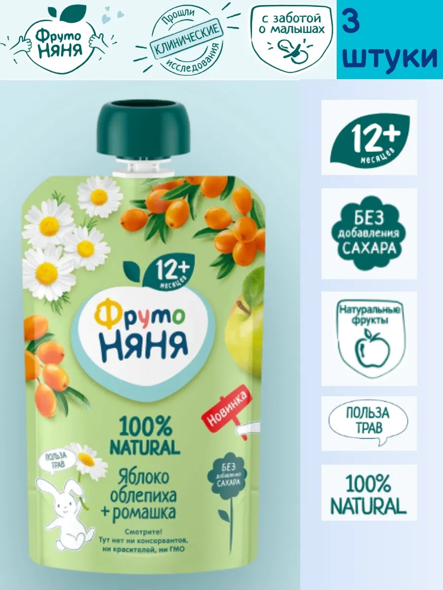 Фруктовое пюре в мягкой упаковке «ФрутоНяня» из яблок, облепихи и ромашки — это вкусный и полезный перекус, который удобно брать с собой, а яркая мягкая упаковка привлечет внимание вашего малыша и позволит ему есть самостоятельно. Алтайская облепиха, спелые яблоки и натуральный экстракт ромашки обеспечат вашего малыша природной пользой и энергией для гармоничного роста!