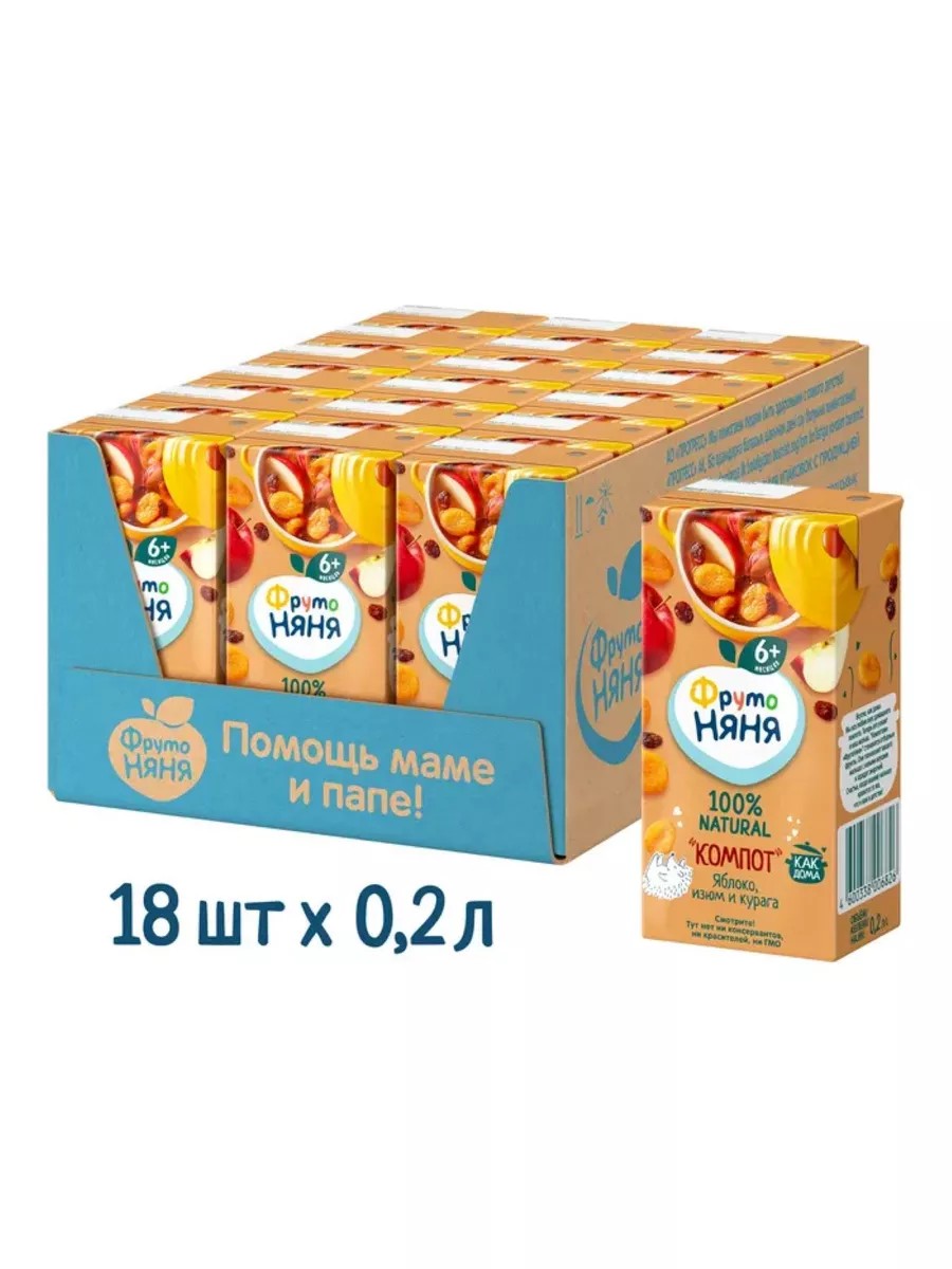 ФрутоНяня Компот для детей ФрутоНяня яблоо-курага-изюм 0,2 л 18 шт
