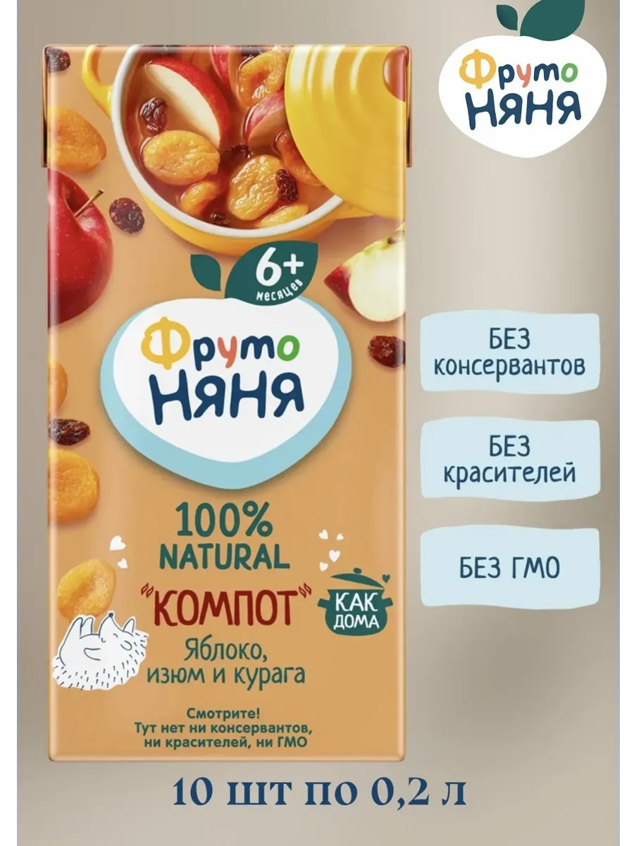 ФрутоНяня напиток сокосодержащий «компот» из яблок с экстрактом изюма и кураги неосветленный для питания детей раннего возраста.
