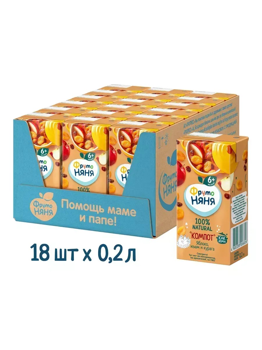 ФрутоНяня Компот из яблок, изюма и кураги, 200мл (18 шт)