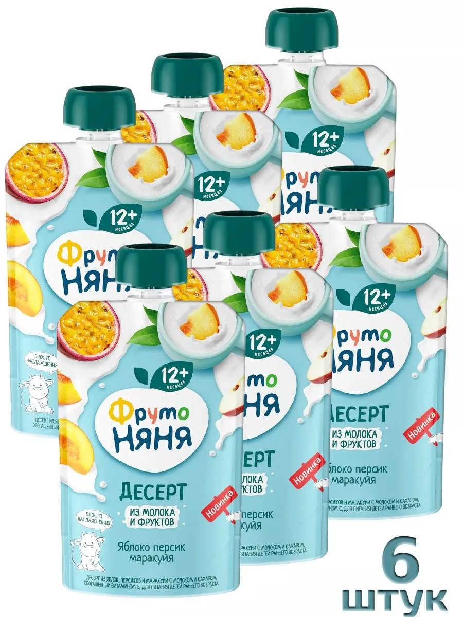 | Состав | Пюре из яблок; сахар; пюре из персиков; молоко сухое цельное; сок маракуйи; крахмал кукурузный; стабилизатор - пектин; загуститель – камедь ксантановая; аскорбиновая кислота – витамин С; регулятор кислотности – лимонная кислота; вода питьевая |
