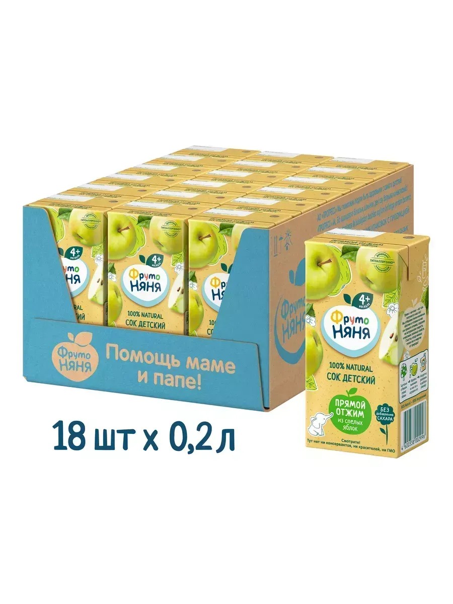 Сок ФрутоНяня из свежих яблок прямого отжима — идеальное решение для питания вашего малыша с 4 месяцев. Благодаря натуральным ингредиентам, таким как отборные фрукты, ягоды и овощи, ваш ребёнок получит природную пользу и энергию для гармоничного роста и развития.