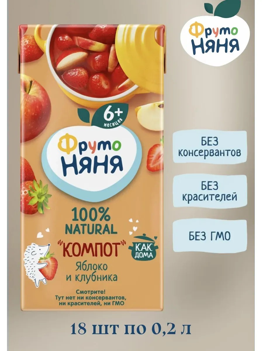 ФрутоНяня Компот ФрутоНяня из яблок и клубники 0,2 л с 6 месяцев