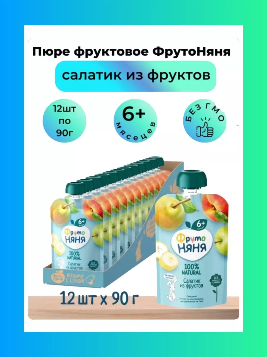 Пюре ФрутоНяня -Продукт готов к употреблению.Для питания детей раннего возраста.Фруктовое пюре в мягкой упаковке. Фрутоняня - это вкусный и полезный перекус, который удобно брать с собой, а яркая мягкая упаковка привлечет внимание Вашего малыша и позволит ему есть самостоятельно. А еще можно поиграть с Фрутокрышками! Крышки-конструкторы от упаковок фруктового пюре Фрутоняня выполнены в 7-ми ярких цветах, легко соединяются между собой. Много интересных и веселых поделок можно смастерить из них вместе с мамой! Пюре ФрутоНяня в мягкой упаковке. Удобно использовать на прогулке, в путешествии или в гостях. Малыш сможет есть сам без ложечки под присмотром взрослых.Яркая и удобная упаковка привлечет внимание малыша и позволит ему научиться разпознавать цвета, а новые вкусы десертов разнообразят рацион питания малыша. Рекомендуется детям с 5 месяцев, начиная с 0,5 чайной ложки два раза в день, постепенно увеличивая к 12 месяцам до 80-100г в день. Ваш малыш будет доволен!