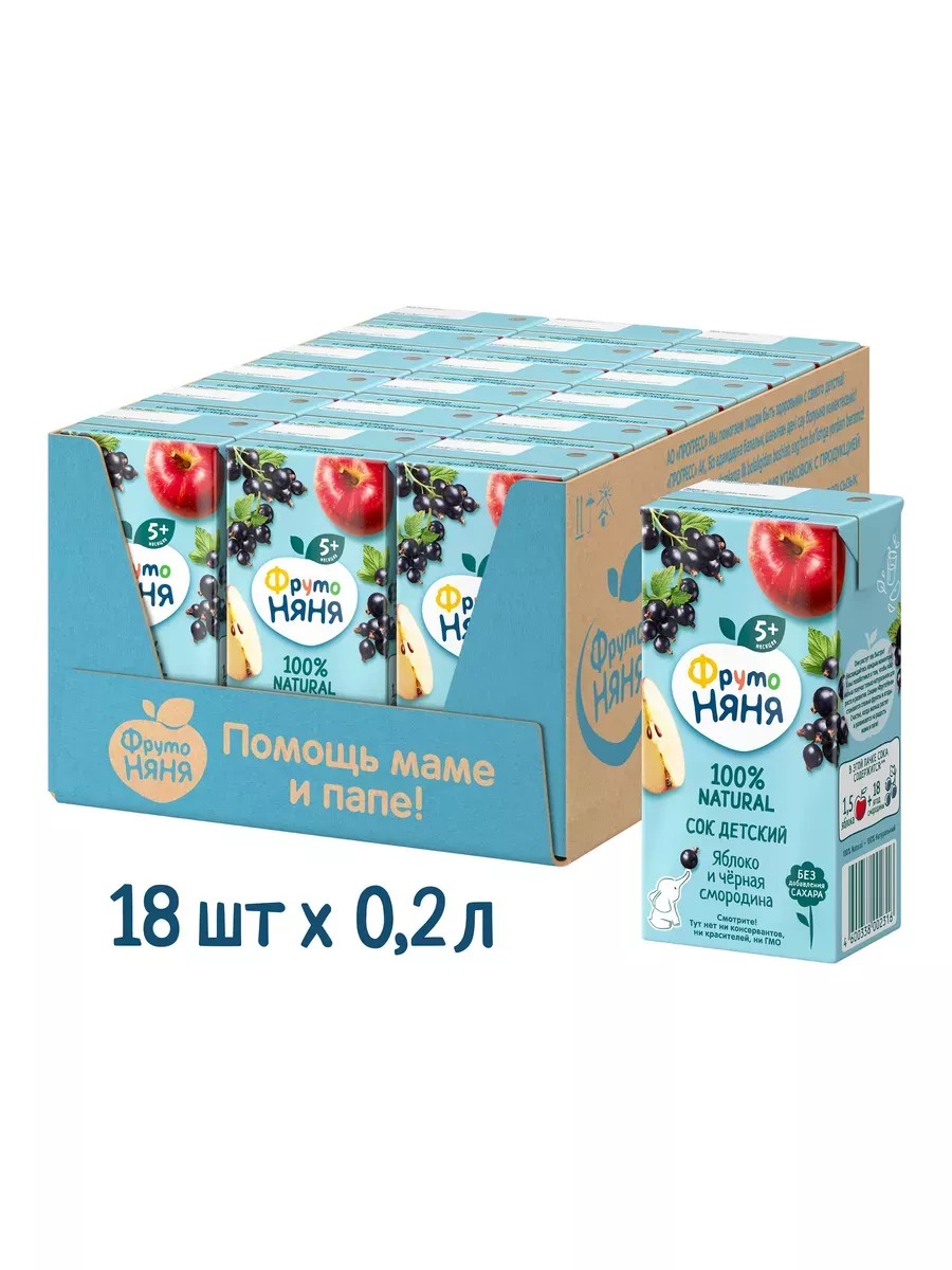 ФрутоНяня Сок из яблок и черной смородины, 200 мл 18 шт