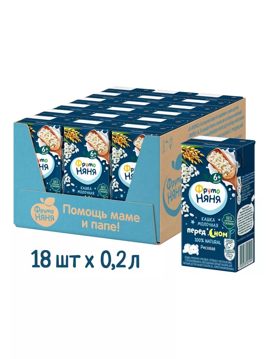 Молочная рисовая каша ФрутоНяня — идеальное решение для питания малышей с 6 месяцев. Благодаря жидкой консистенции, она нормализует стул и положительно влияет на функцию кишечника. Злаки, содержащиеся в каше, обеспечивают длительное насыщение и спокойный сон ребёнка.