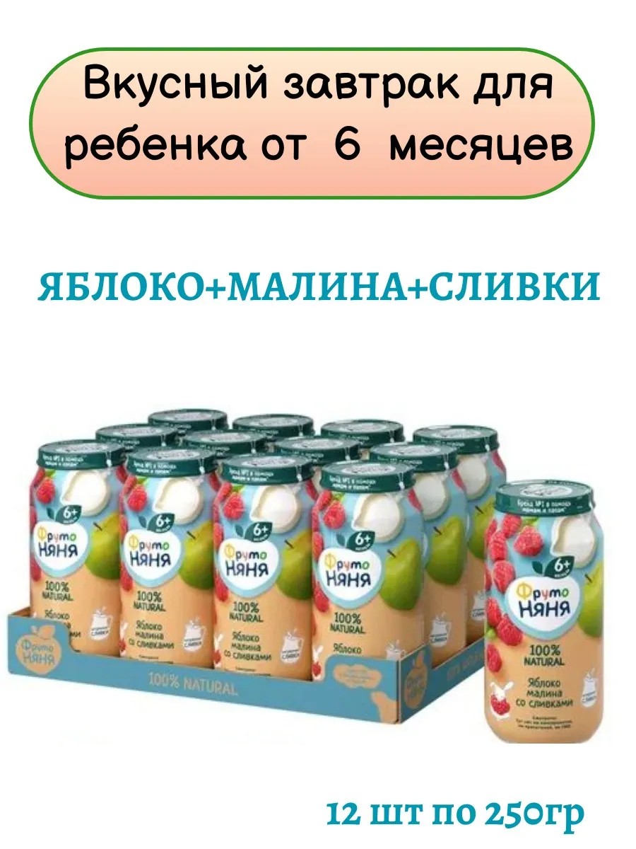 Пюре детское Яблоко,малина со сливками,12шт по 250гр