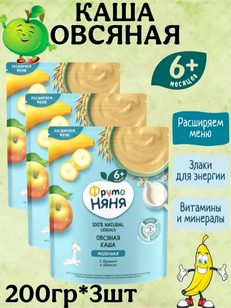 Каша молочная овсянка-банан-яблоко с 6месяцев, 200г, 3шт