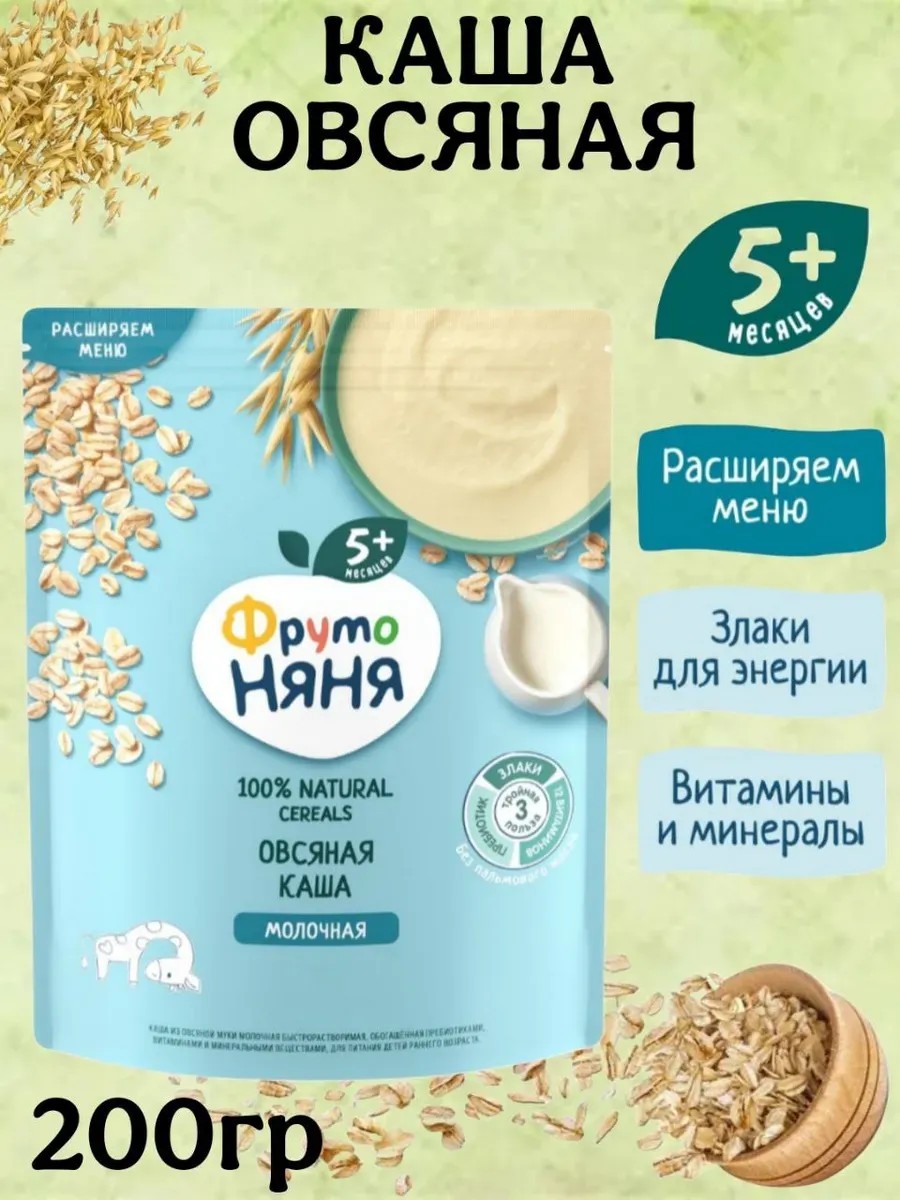 Детские каши «ФрутоНяня» — это злаки для энергии, 12 витаминов и минеральные вещества для развития организма малыша, пребиотик инулин для комфортного пищеварения. Овсяная крупа богата пищевыми волокнами и содержит растительные белки, жиры и углеводы для гармоничного развития малыша. Однородная текстура овсяной каши способствует её лёгкому усвоению. А ещё мы добавили в них важные нутриенты: 12 витаминов (C, E, PP, B2, B1, B6, B12, A, D3, биотин, пантотеновую кислоту и фолиевую кислоту) и три минеральных вещества: цинк (Zn), йод (I), железо (Fе). Их кладём в продукт уже в самом конце его изготовления, для того чтобы не подвергать термообработке. Так они сохраняют все свои полезные свойства. Ведь мы хотим, чтобы малыш рос здоровым и развивался гармонично