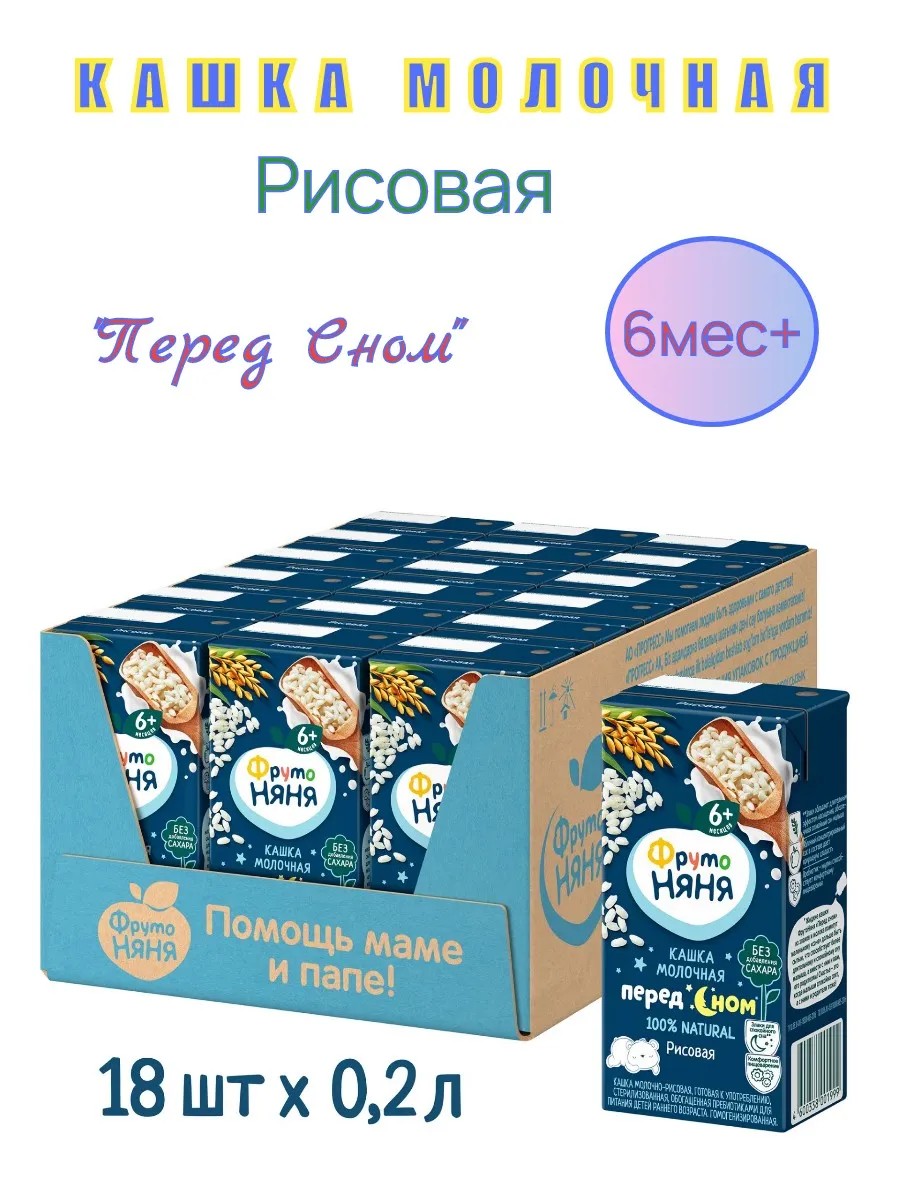 Кашка молочная рисовая, 200мл,, "перед сном". Готовая к употреблению. Рекомендована для кормления детей, достигших 6 месяцев. Полноценная порция еды для малыша. Она представлена в упаковке тетрапак, в полной мере сохраняющей все питательные вещества без использования консервантов. В составе только натуральные компоненты, без красителей, ароматизаторов, заменителей жиров. Благодаря крахмально-слизистой структуре и обволакивающему действию молочно-рисовая кашка благотворно влияет на ЖКТ и защищает желудок от раздражения. Дополнительно каша обогащена пребиотиками, способствующими улучшению пищеварения. Перед употреблением продукт необходимо подогреть, перелив в бутылочку или тарелку, и тщательно размешать. В комплекте трубочка для напитков.