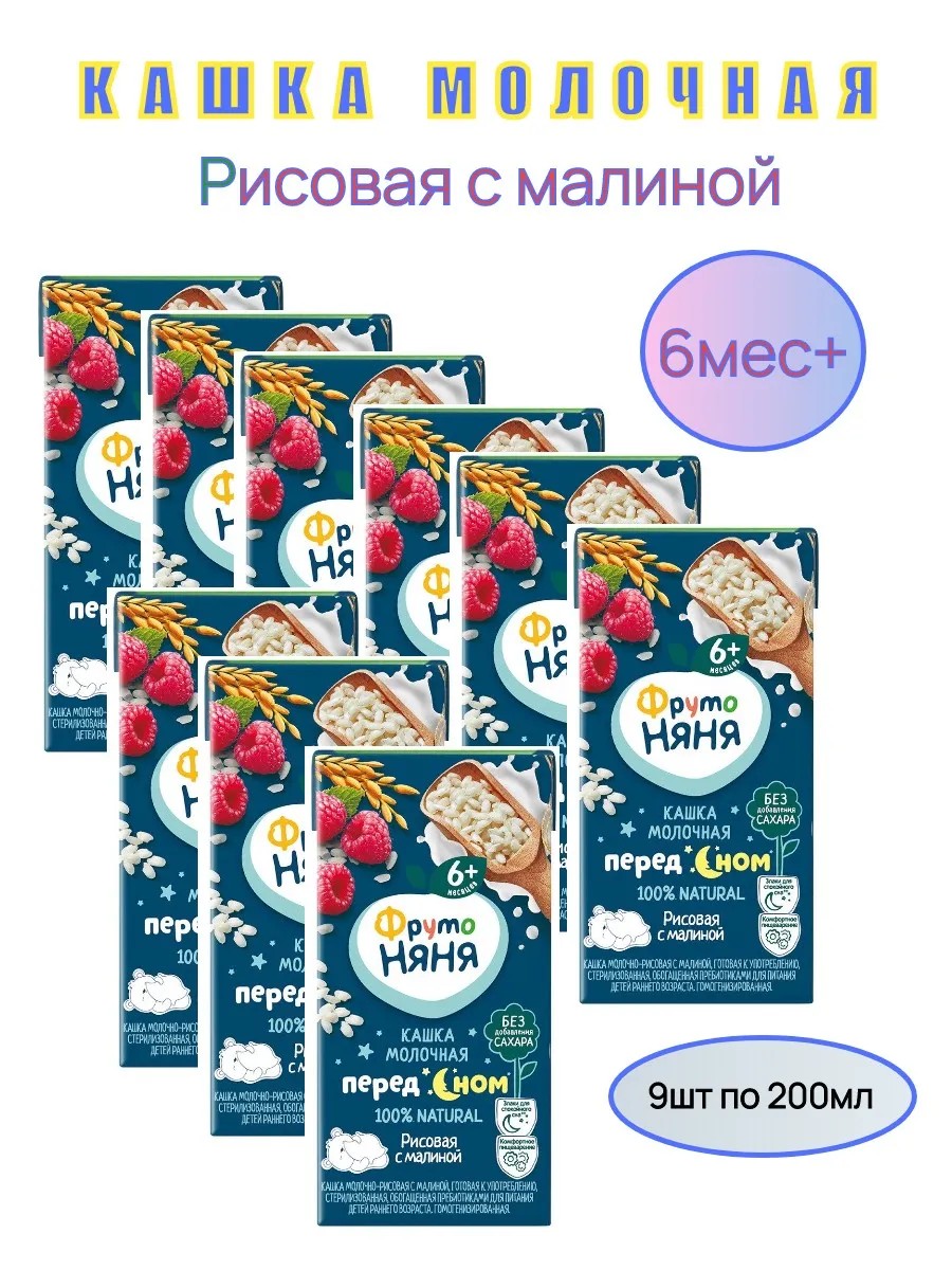 Кашка молочная рисовая с малиной, 200мл,, "перед сном". Готовая к употреблению. Рекомендована для кормления детей, достигших 6 месяцев. Полноценная порция еды для малыша. Она представлена в упаковке тетрапак, в полной мере сохраняющей все питательные вещества без использования консервантов. В составе только натуральные компоненты, без красителей, ароматизаторов, заменителей жиров. Дополнительно каша обогащена пребиотиками, способствующими улучшению пищеварения. Перед употреблением продукт необходимо подогреть, перелив в бутылочку или тарелку, и тщательно размешать. Содержит сахара природного происхождения. В комплекте трубочка для напитков.