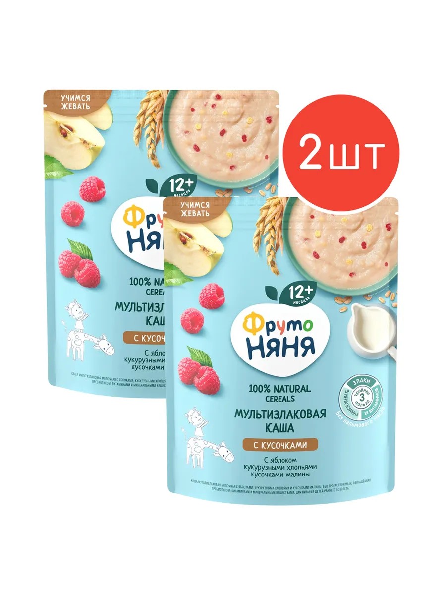 | Полное наименование товара | ФрутоНяня» каша сухая мультизлаковая молочная с яблоками, кукурузными хлопьями и кусочками малины, 200 г |