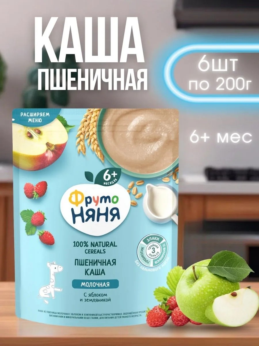 Сухая молочная пшеничная каша ФрутоНяня с яблоком и земляникой — это яркое сочетание любимых фруктов и ягод, которое разнообразит рацион ребенка от 6 месяцев. Молочная каша ФрутоНяня пшеничная с яблоком и земляникой не содержит красителей, консервантов и ГМО. В составе только натуральные ингредиенты, а также целый комплекс питательных веществ и пребиотик инулин, способствующий комфортному пищеварению. Вкусная и полезная каша станет одним из любимых завтраков малыша, обеспечив его чувством сытости и энергией надолго. Состав: Молоко сухое цельное, мука пшеничная, сахар, пюре яблочное, пребиотик - инулин, пюре земляничное, витамин С (кислота аскорбиновая), витаминно-минеральный премикс (витамин Е (dl-альфа-токоферол ацетат), витамин РР (никотинамид), пантотеновая кислота (D-пантотенат кальция), витамин В2 (рибофлавин), витамин В1 (тиамина гидрохлорид), витамин В6 (пиридоксина гидрохлорид), витамин А (ретинола ацетат), фолиевая кислота, витамин D3 (холекальциферол), биотин (d-биотин), витамин В12 (цианокобаламин), железо (железа пирофосфат), цинк (цинка оксид), йод (йодид калия)).