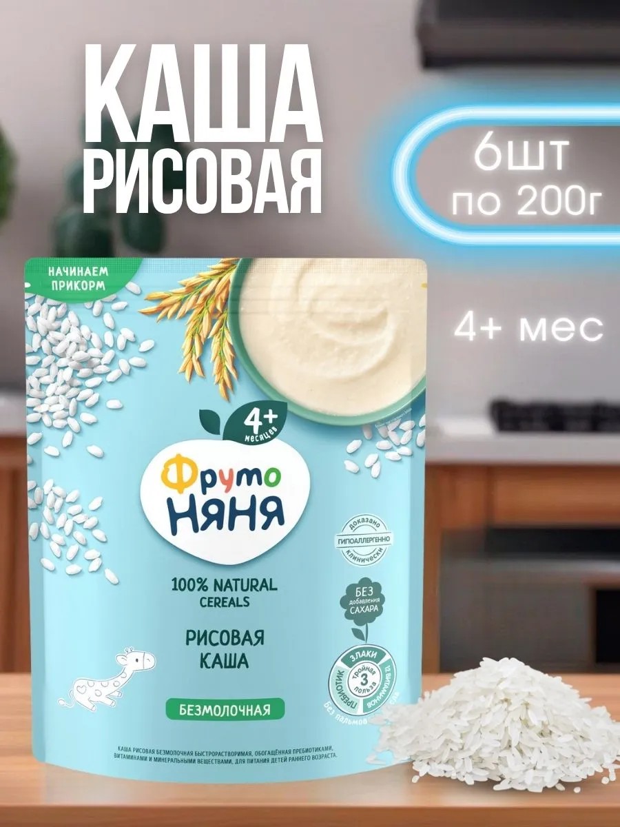 Рисовая каша ФрутоНяня — гипоаллергенный безглютеновый продукт без консервантов, красителей и ГМО, обогащенный целым комплексом витаминов и минеральных веществ для нормального развития и роста вашего малыша. Пребиотик в составе способствует нормальному пищеварению. Продукт подходит в качестве питательных завтраков или ужинов, которые зарядят малыша энергией и пользой.