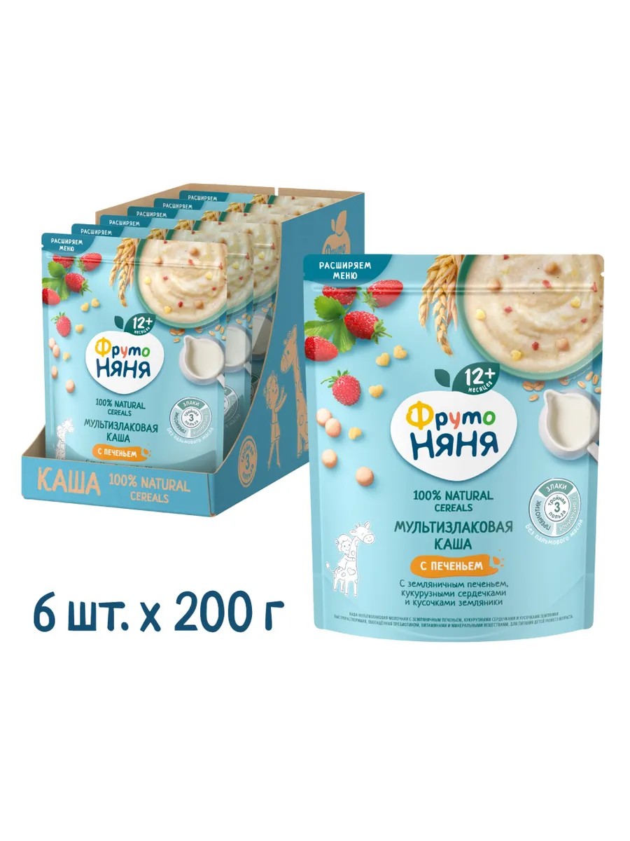 Каша сухая мультизлаки-земляника-печенье 200г 6шт