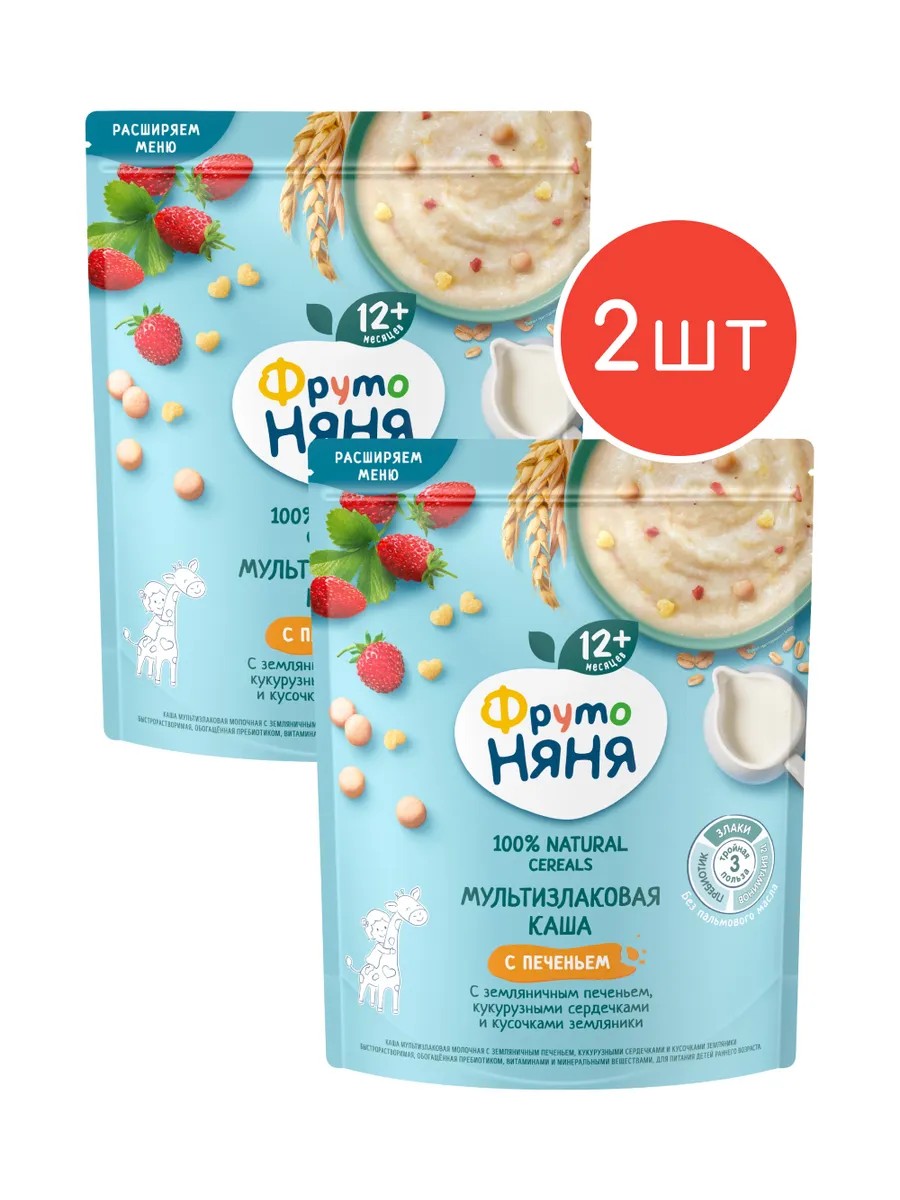 Каша сухая мультизлаки-земляника-печенье 200г 2шт