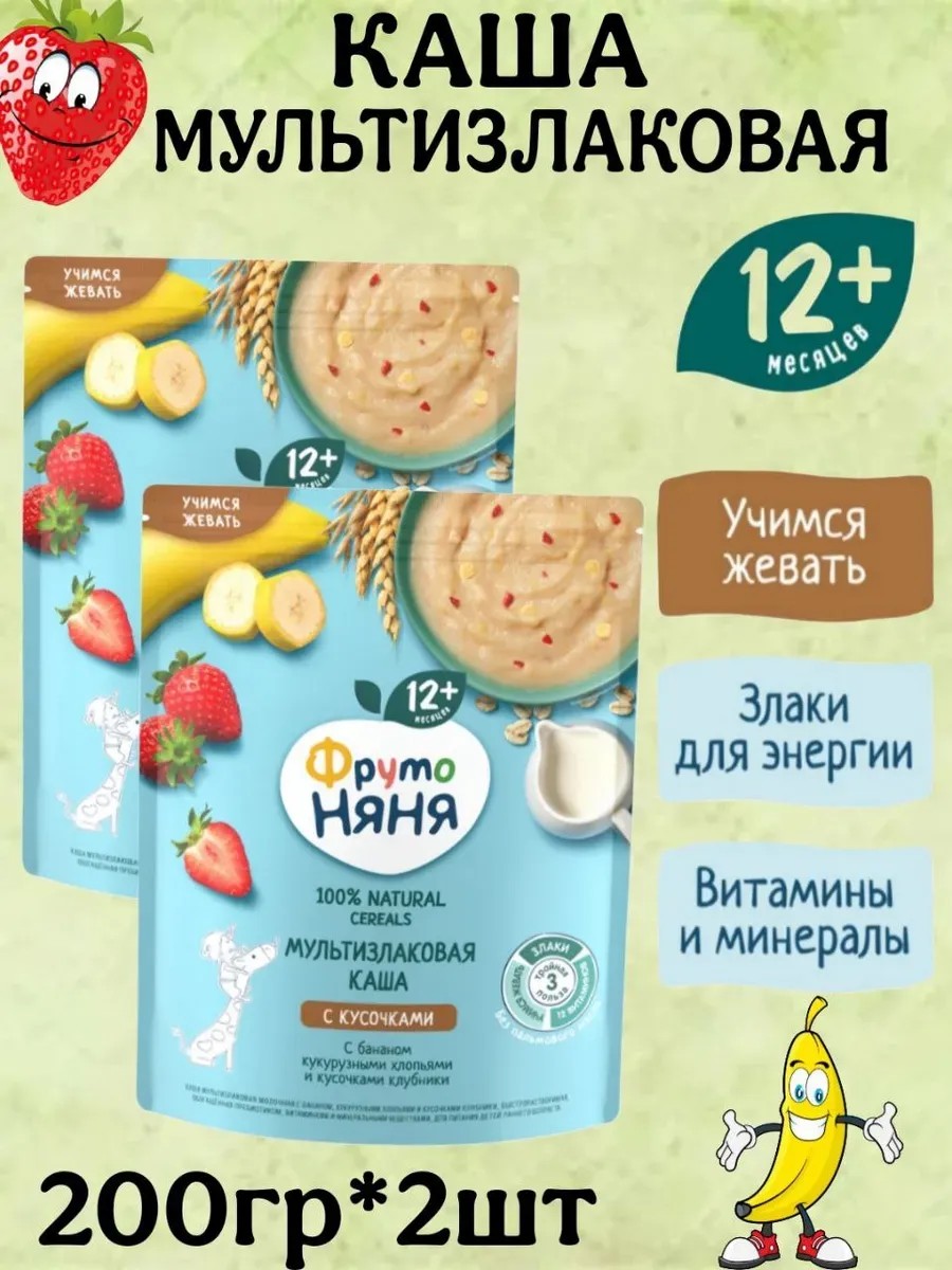 Каша молочная мультизлаковая банан-клубника с 12мес,200г,2шт