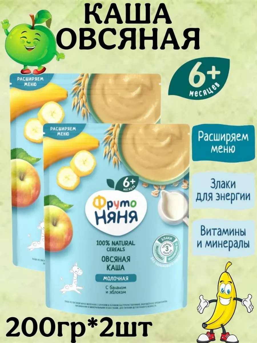 Каша молочная овсянка-банан-яблоко с 6месяцев, 200г, 2шт