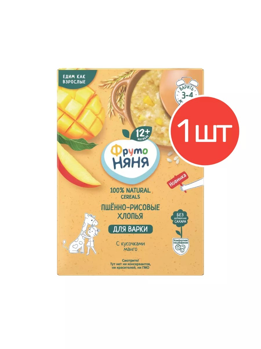 СоставХлопья пшённые, хлопья рисовые, пребиотик – инулин, кусочки манго сушёные, натуральный ароматизатор; . Продукт может содержать следы орехов, арахиса, кунжута, глютена