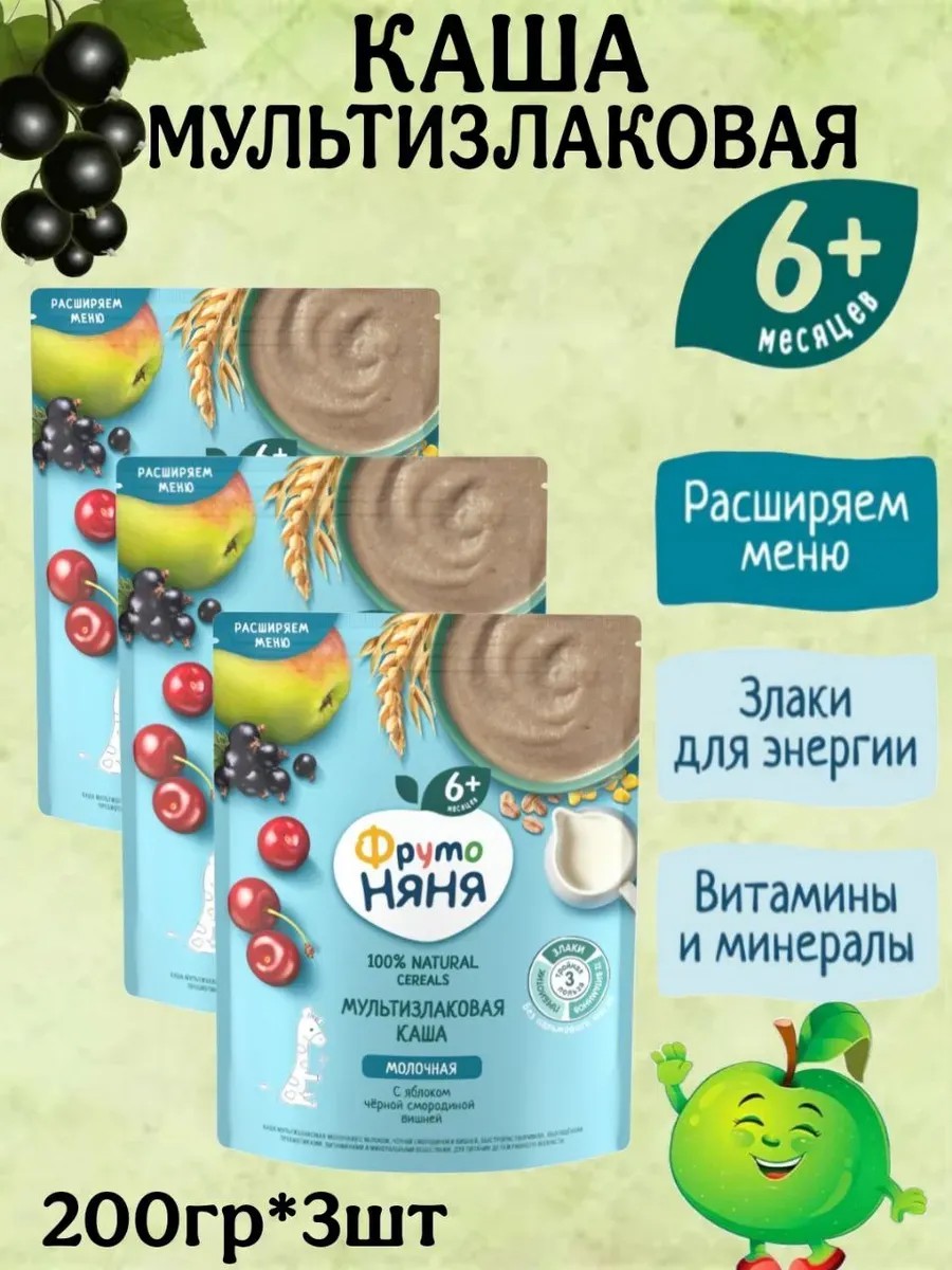Каша ФрутоНяня "Мультизлаковая с черной смородиной, яблоком и вишней" - это вкусный и полезный завтрак для малышей с 6 месяцев. Каша содержит blend злаков, обогащенных витаминами и минералами, а также кусочки черной смородины, яблока и вишни, которые придают каше приятный вкус и аромат. Благодаря своему составу каша способствует развитию и росту вашего малыша, а также насыщает его энергией на весь день. Каша легко готовится и быстро растворяется в воде или молоке.