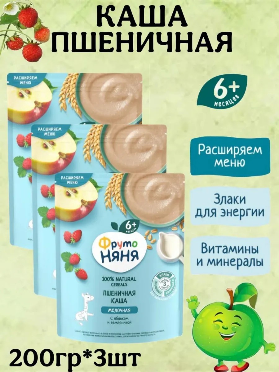 Каша молочная пшеница-яблоко-земляника с 6мес, 200г,3шт