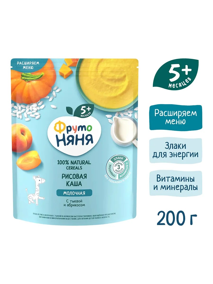 The prebiotic inulin also promotes comfortable digestion. Frutonyanya rice milk porridge with pumpkin and apricot is a delicious and healthy breakfast that will keep your baby full for a long time and put him in a great mood for the whole day.