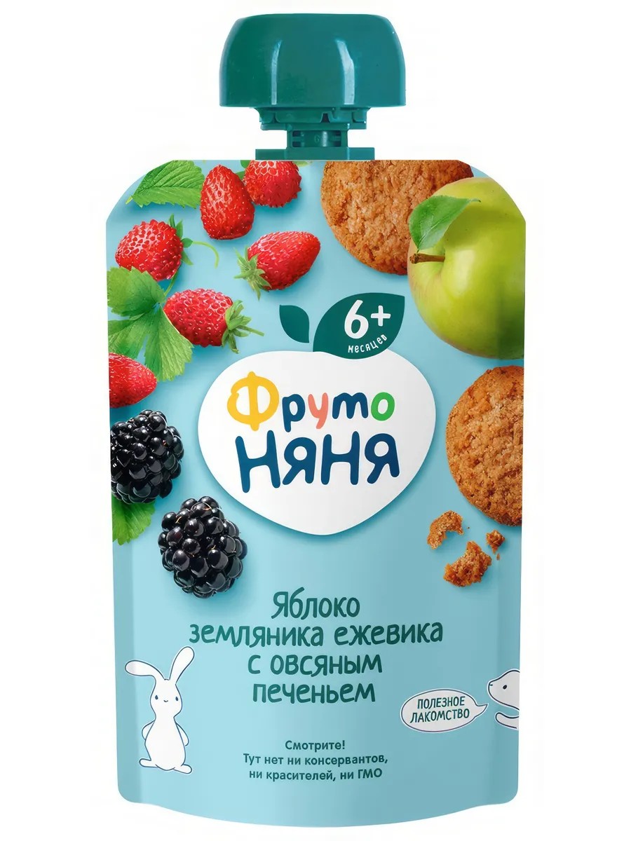 Пюре фруктово-ягодное ФрутоНяня Яблоко, земляника и ежевика с овсяным печеньем это вкусный и полезный перекус, который можно брать с собой, использовать на прогулке, в путешествии или в гостях. Крышки-конструкторы от упаковок фруктового пюре ФрутоНяня выполнены в 7 ярких цветах и легко соединяются между собой, из них можно смастерить много интересных и веселых поделок. Для питания ребенка раннего возраста, особенно в течение его первого года жизни, предпочтительнее грудное вскармливание. Товар не является полноценным заменителем грудного женского молока. Возрастные и иные ограничения см. на упаковке.