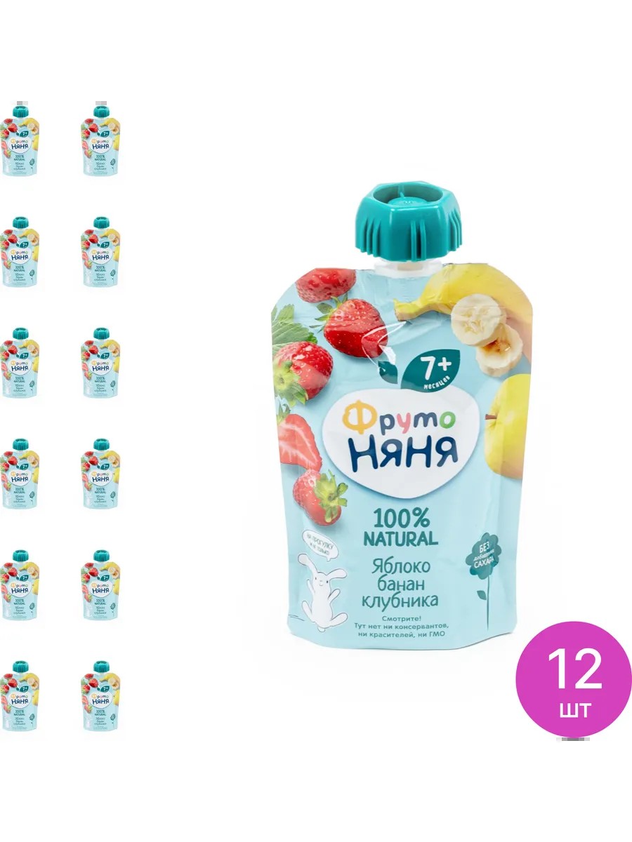 Пюре яблоко банан клубника 90г (комплект из 12 шт)