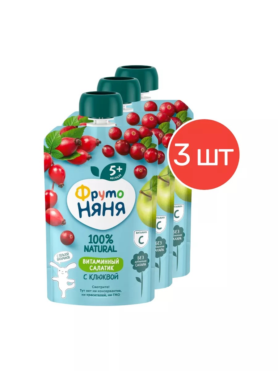 Фруктовое пюре «Витаминный салатик» от «ФрутоНяни» в мягкой упаковке — это вкусный и полезный перекус, который удобно брать с собой, а яркая мягкая упаковка привлечет внимание вашего малыша и позволит ему есть самостоятельно. Спелые яблоки, ягоды клюквы, шиповника и витамин С обеспечат организм вашего малыша природной пользой и энергией для гармоничного роста!