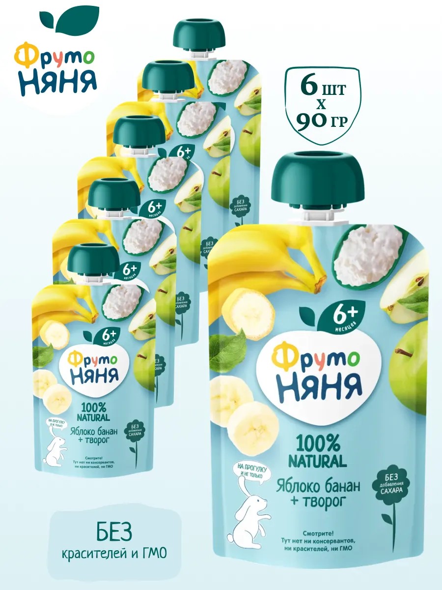 Пюре детское яблоко, банан + творог от Фрутоняня это вкусный и полезный перекус для малышей. Вкусная еда без сахара для полезного питания маленьких детей. Диетическое и правильное пюре богатое микроэлементами для иммунитета. Удобный набор из 6 паучей в мягкой упаковке для перекуса в дорогу. Рекомендуется детям для начала прикорма. Это здоровый выбор десерта для ребенка без добавления сахара. Пюрешки удобны для перекуса в дороге, на прогулке, в путешествии или в гостях. Фруктовое пюре в мягкой упаковке это вкусный и полезный перекус, который удобно брать с собой, а яркая мягкая упаковка привлечёт внимание Вашего малыша и позволит ему есть самостоятельно. В этом пюре только отборные фрукты и никакого добавленного сахара, чтобы малышу было полезно и вкусно. Это пюре из натуральных фруктов, выращенных без использования химических удобрений и пестицидов, что делает его безопасным и полезным для детей всех возрастов. Пюре богато витаминами и минералами, необходимыми для правильного развития и укрепления иммунитета малышей. Благодаря своей натуральной основе и отсутствию добавок, является отличным дополнением к любому детскому рациону, обеспечивая приятный вкус и питательную ценность. Продукт готов к употреблению. Комплект 6 штук.