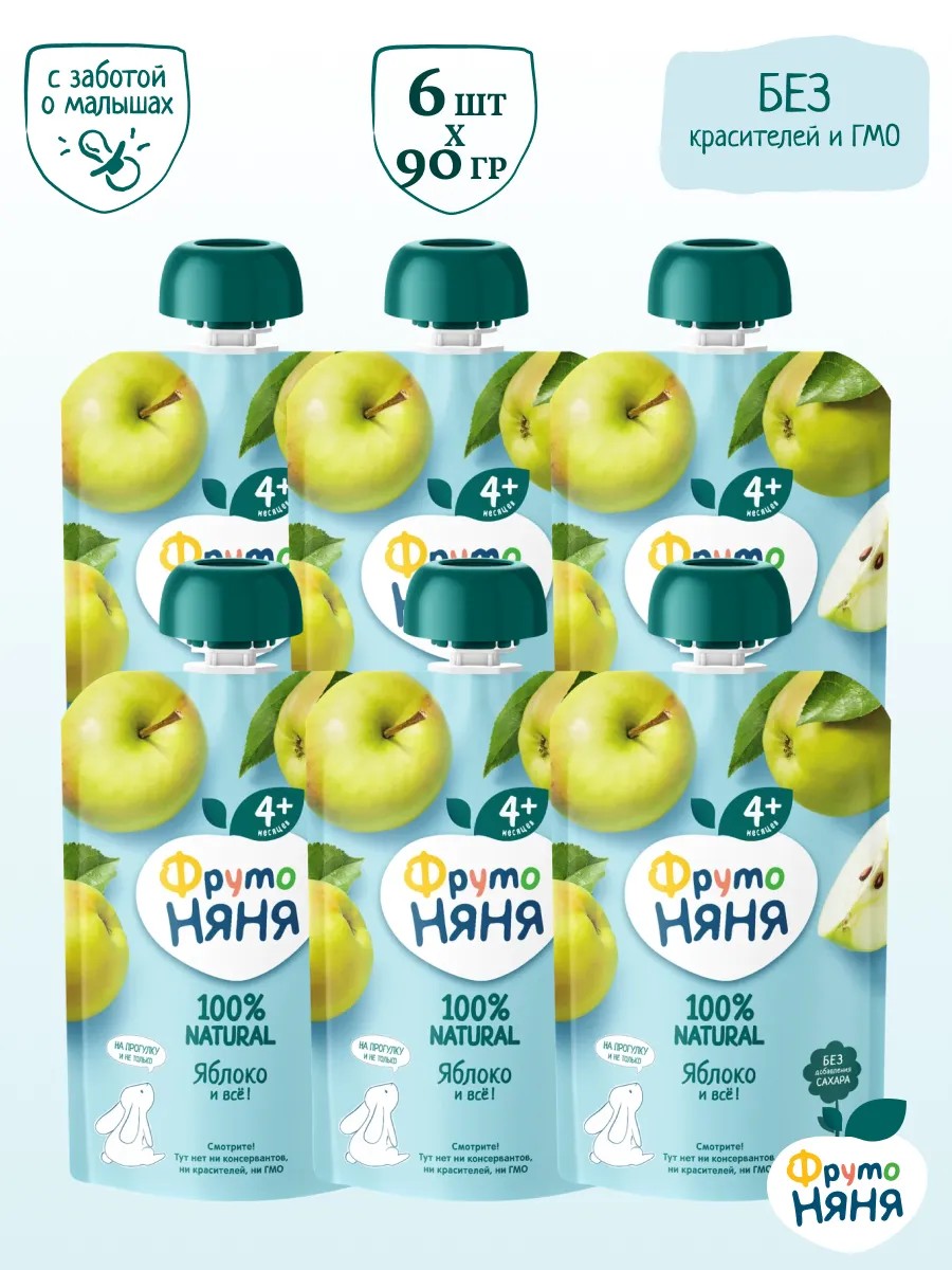 Полезное детское пюре "Яблоко" от Фрутоняня для малышей! Вкусная еда без сахара для полезного питания маленьких детей. Диетическое и правильное пюре из яблок, богатое микроэлементами для иммунитета. Удобный набор из 6 паучей в мягкой упаковке для перекуса в дорогу. Рекомендуется детям для начала прикорма. Это здоровый выбор десерта для ребенка без добавления сахара. Пюрешки удобны для перекуса в дороге, на прогулке, в путешествии или в гостях. Фруктовое пюре в мягкой упаковке это вкусный и полезный перекус, который удобно брать с собой, а яркая мягкая упаковка привлечёт внимание Вашего малыша и позволит ему есть самостоятельно. В этом пюре только отборные яблоки и никакого добавленного сахара, чтобы малышу было полезно и вкусно. Это пюре из натуральных яблок, выращенных без использования химических удобрений и пестицидов, что делает его безопасным и полезным для детей всех возрастов. Пюре богато витаминами и минералами, необходимыми для правильного развития и укрепления иммунитета малышей. Благодаря своей натуральной основе и отсутствию добавок, является отличным дополнением к любому детскому рациону, обеспечивая приятный вкус и питательную ценность. Продукт готов к употреблению. Комплект 6 штук.