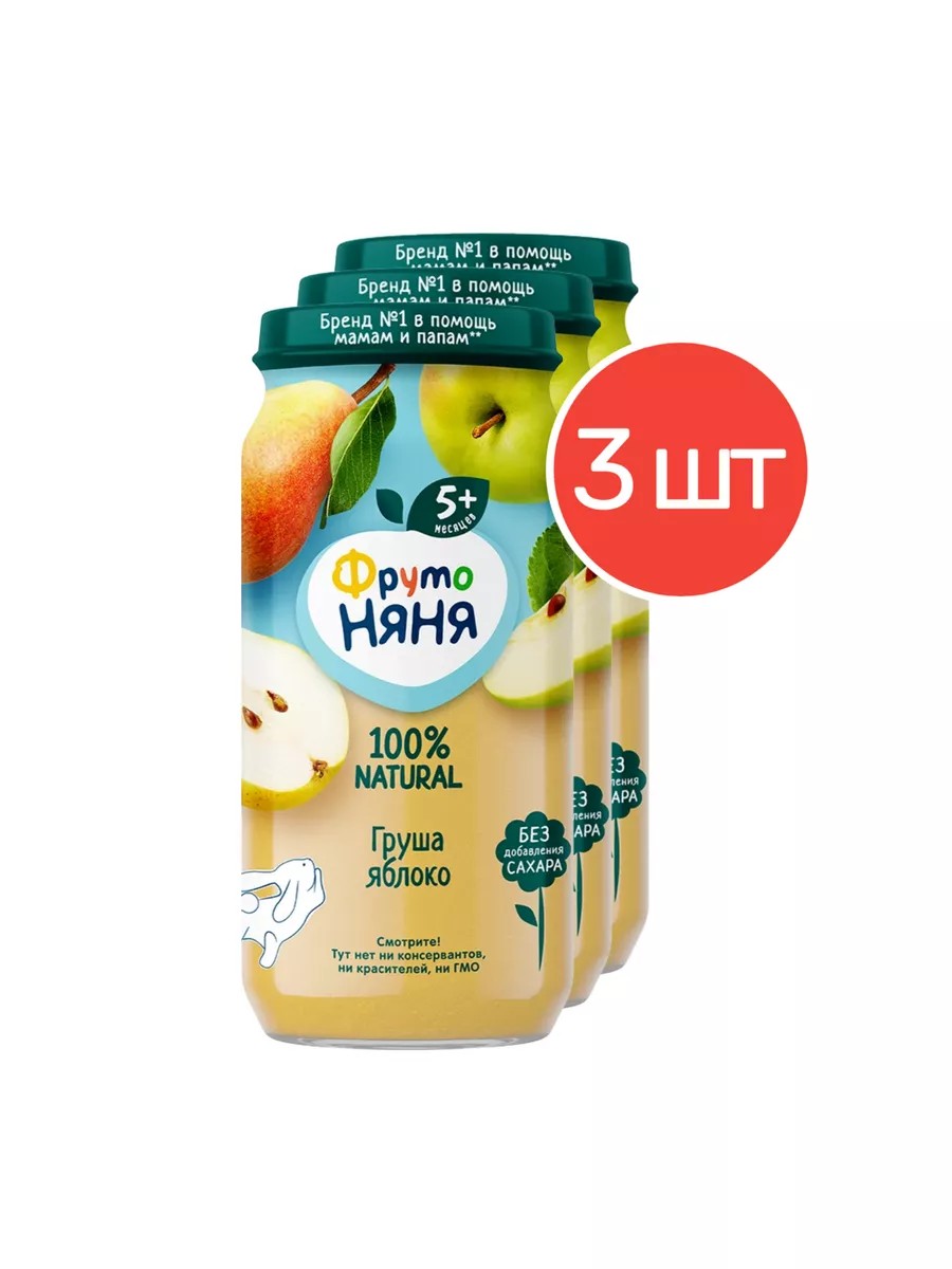 Пюре с 5 месяцев, яблоко и груша, 250 г 3 шт