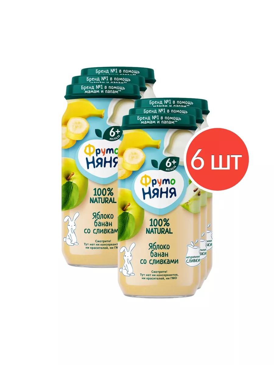 Пюре из яблок и бананов со сливками, 250г 6 шт