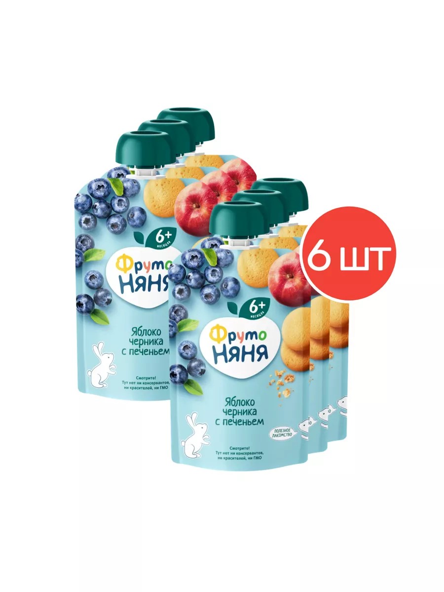 Пюре из яблок и черники с печеньем 90 г 6 шт