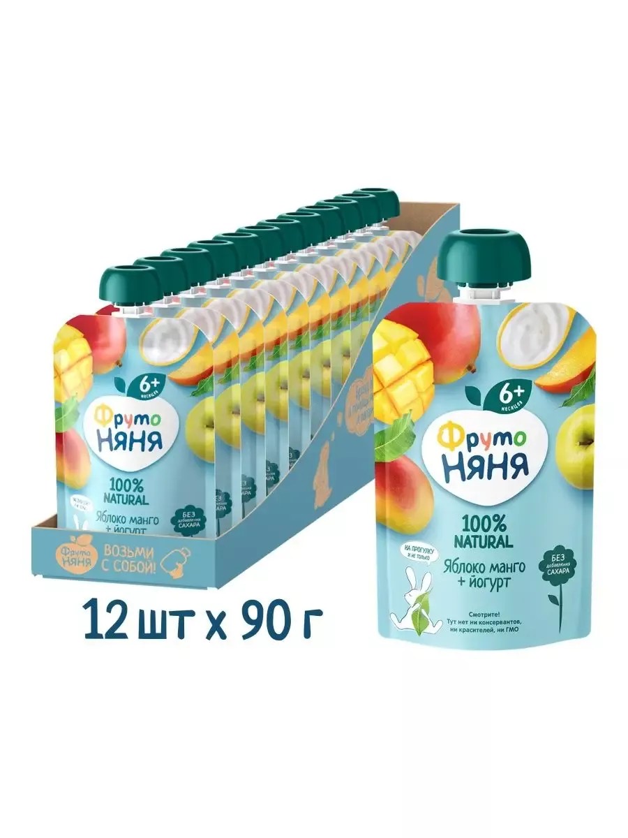 Пюре из яблок и манго с йогуртом, 90г (12 шт)