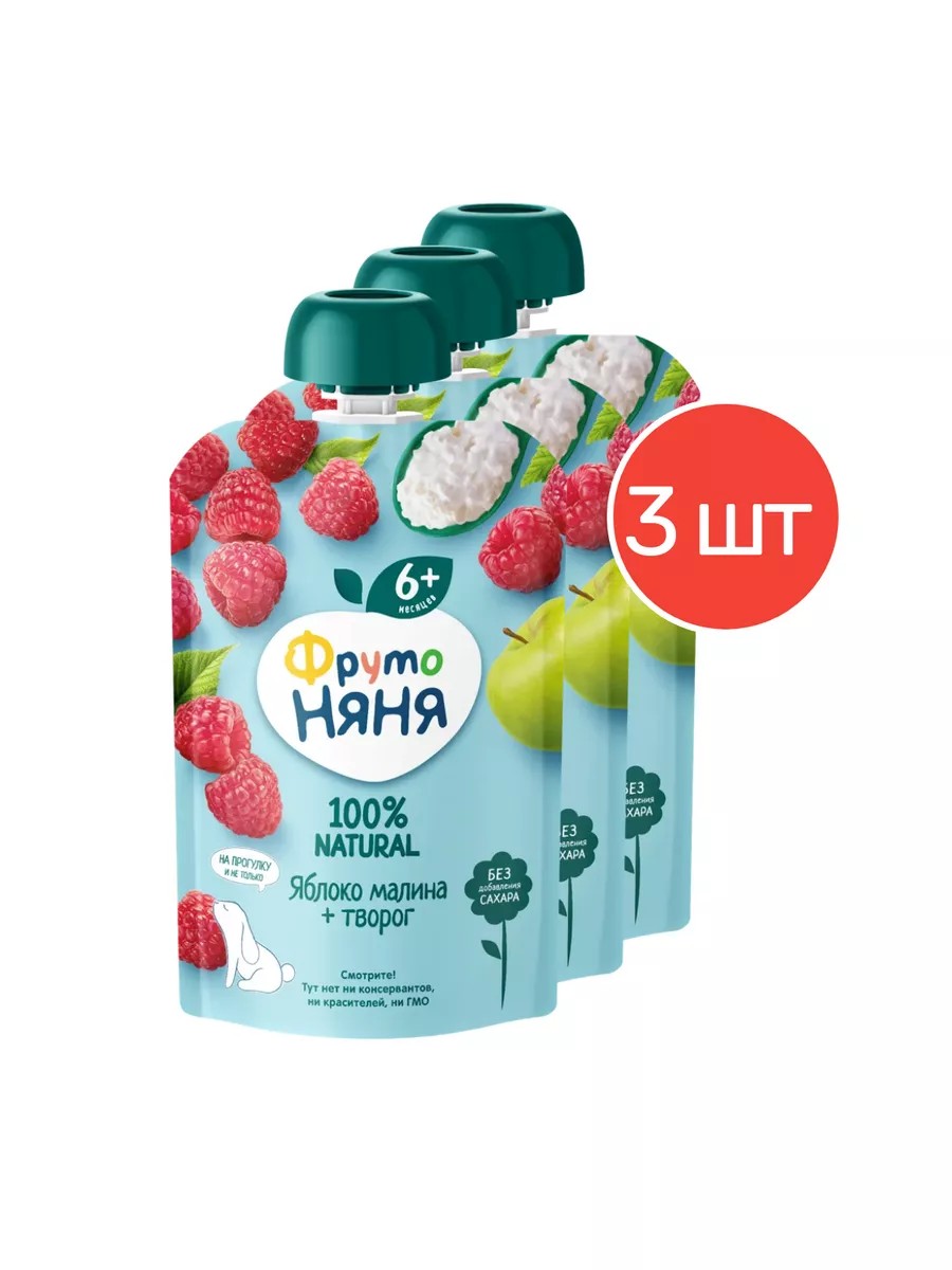 Пюре из яблок, малины и творога, 90 г 3 шт