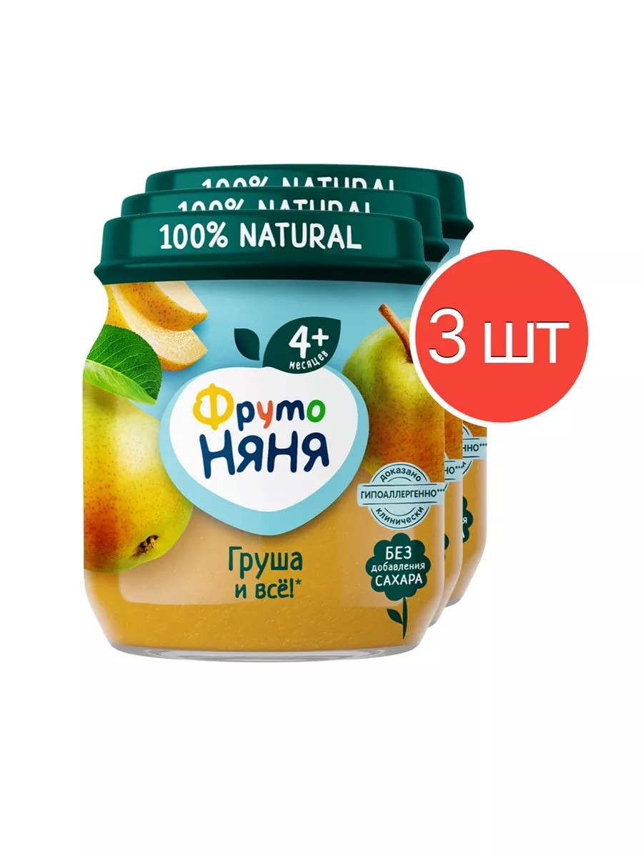 Пюре «ФрутоНяня» из груш поможет разнообразить рацион ребенка на первом году жизни. Подходит для первого прикорма детей в возрасте с 4 месяцев. Продукт гипоаллергенный, и это доказано клинически. В его составе только натуральные компоненты — пюре из сочных и спелых груш без добавления сахара, поэтому оно такое вкусное, полезное и помогает быстро зарядить малыша энергией. Открытую стеклянную баночку необходимо хранить в холодильнике.