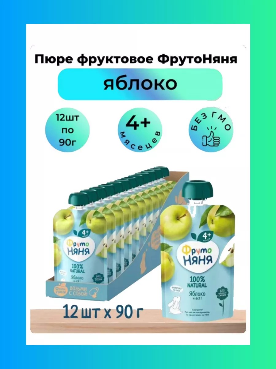 Пюре фруктовое яблоко, 12 шт по 90 гр