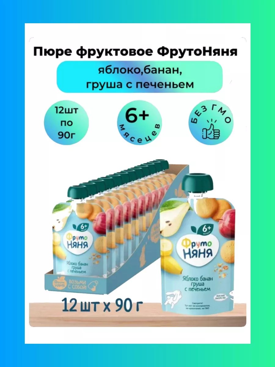 Пюре фруктовое яблоко, банан, груша с печеньем