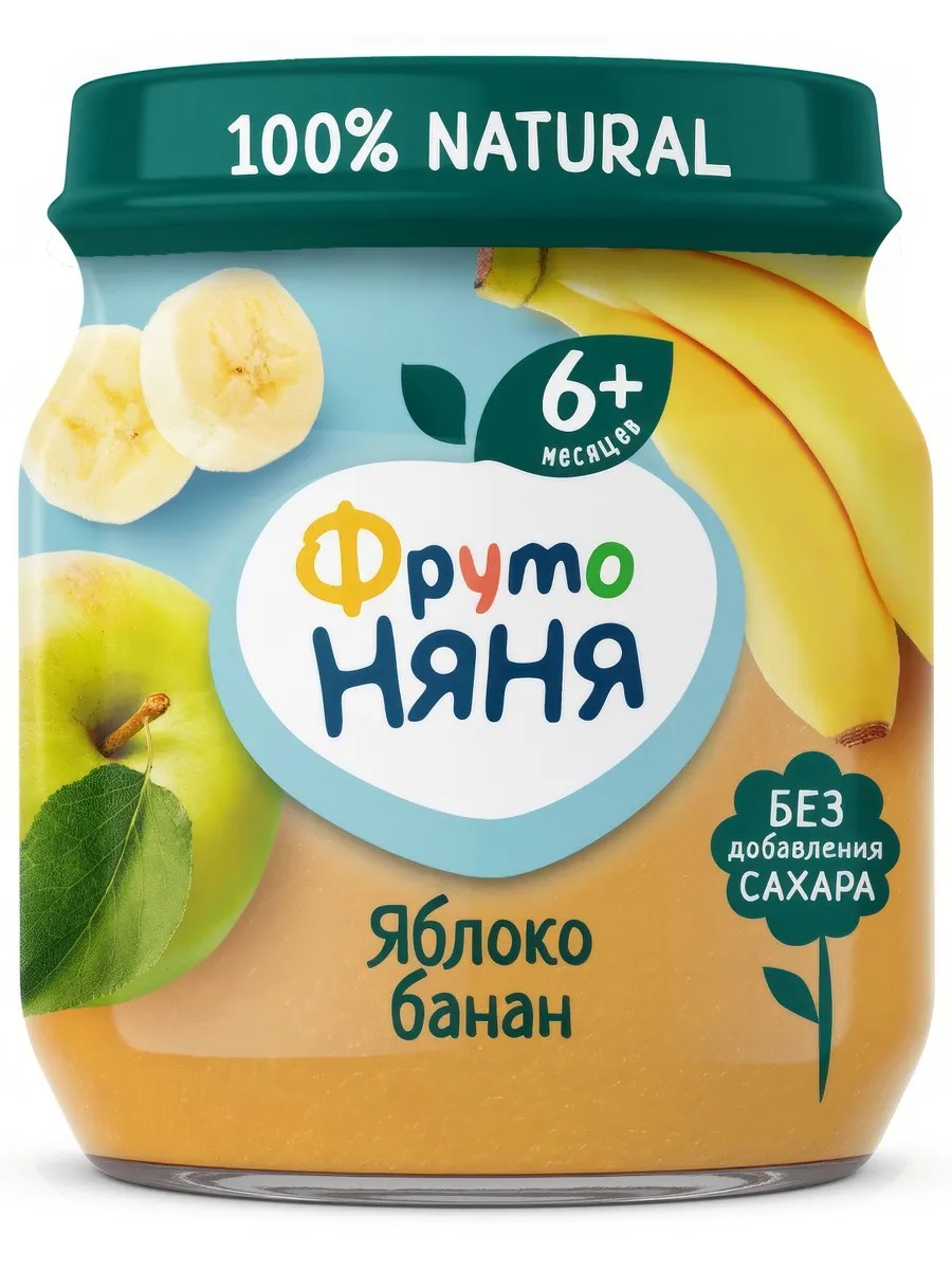 Пюре ФрутоНяня Яблоко и банан с 6 месяцев, 100 г представляет собой готовый к употреблению продукт, для производства которого используются натуральные ингредиенты, без использования добавок искусственного происхождения. Щадящая технология производства позволяет сохранить максимум полезных свойств, которыми обладают сочные фрукты. Такое пюре идеально подходит в качестве сытного перекуса, а за счет компактной практичной упаковки ее можно взять с собой в дорогу или на прогулку.