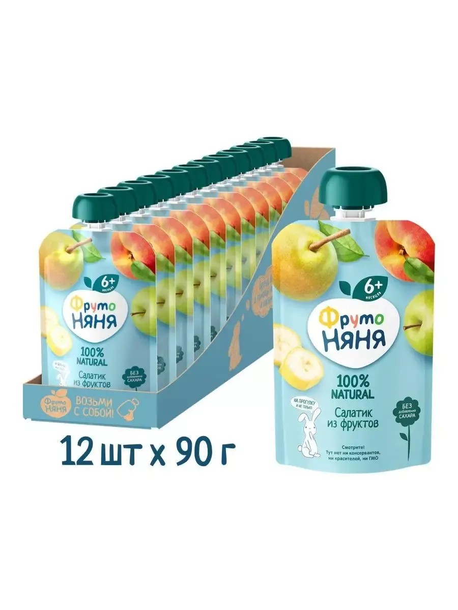 Фруктовое пюре «ФрутоНяня» — идеальный выбор для маленьких гурманов! Натуральное пюре из яблока, груши, банана и персика с нежным йогуртом станет вкусным и полезным перекусом для вашего малыша. Благодаря удобной мягкой упаковке и ярким крышкам-конструкторам, ребёнок сможет есть самостоятельно и весело проводить время, играя с Фрутокрышками.