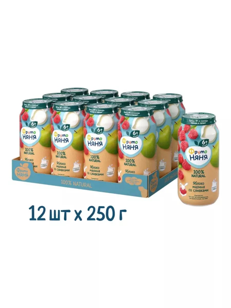 Пюре из яблок и малины со сливками 250 г 12 шт