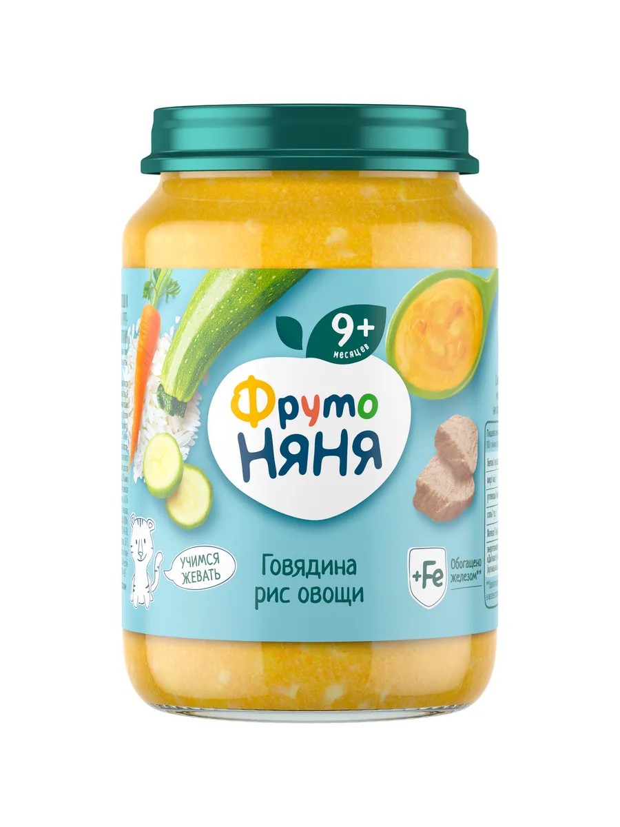 Полное наименование товараПюре мясо-растительное ФРУТОНЯНЯ Овощи с рисом и говядиной, с 9 месяцев, 190г