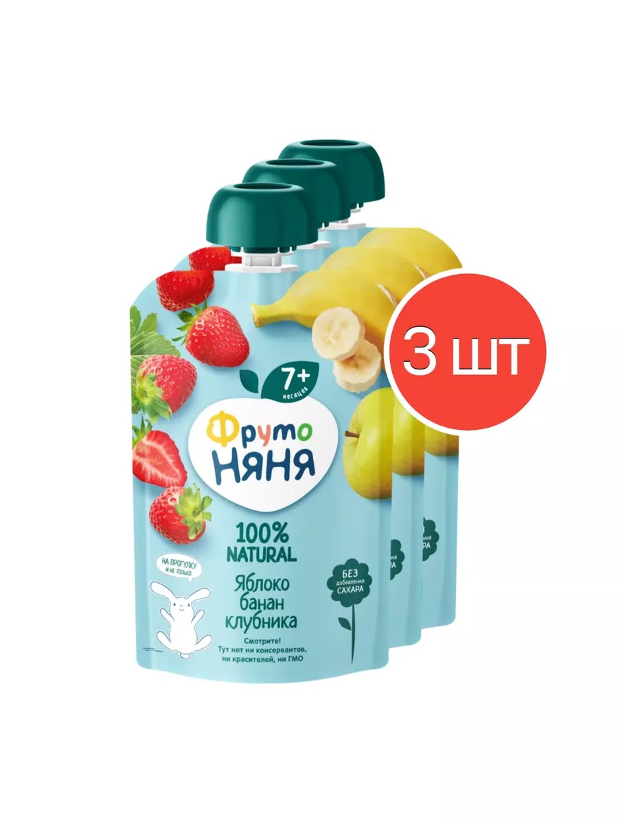 СоставПюре из яблок, пюре из бананов, пюре из клубники, сок яблочный концентрированный.