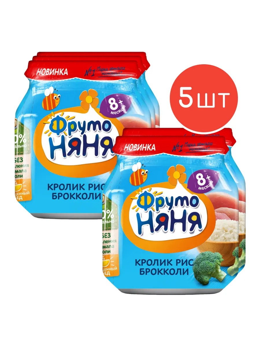 ФрутоНяня пюре из капусты брокколи и мяса кролика с рисом для питания детей раннего возраста. Стерилизованное. Пюреобразное. Консервы растительно-мясные.