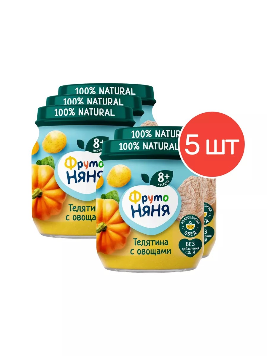 Пюре «ФрутоНяня» из телятины с овощами поможет разнообразить рацион ребенка от 8 месяцев. В состав пюре входят только натуральные компоненты без добавления соли: телятина, тыква, морковь, картофель. Мясо-растительное пюре «ФрутоНяня» — источник белка и питательных веществ для полноценного роста и развития вашего малыша. Продукт подходит в качестве полноценного приема пищи — например, сытного и полезного обеда, который поможет зарядить малыша энергией и отличным настроением